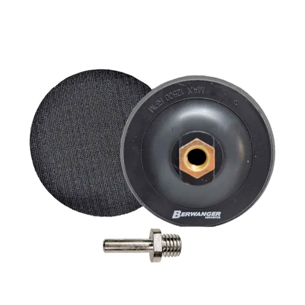 Suporte para Lixa Velcro 125mm com Borracha Flexível – Rosca M14 + Haste Adaptadora